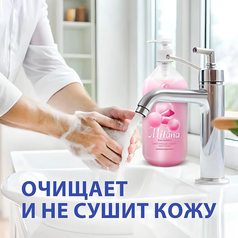 Крем-мыло жидкое увлажняющее "Milana fruit bubbles" (флакон 1000 мл)