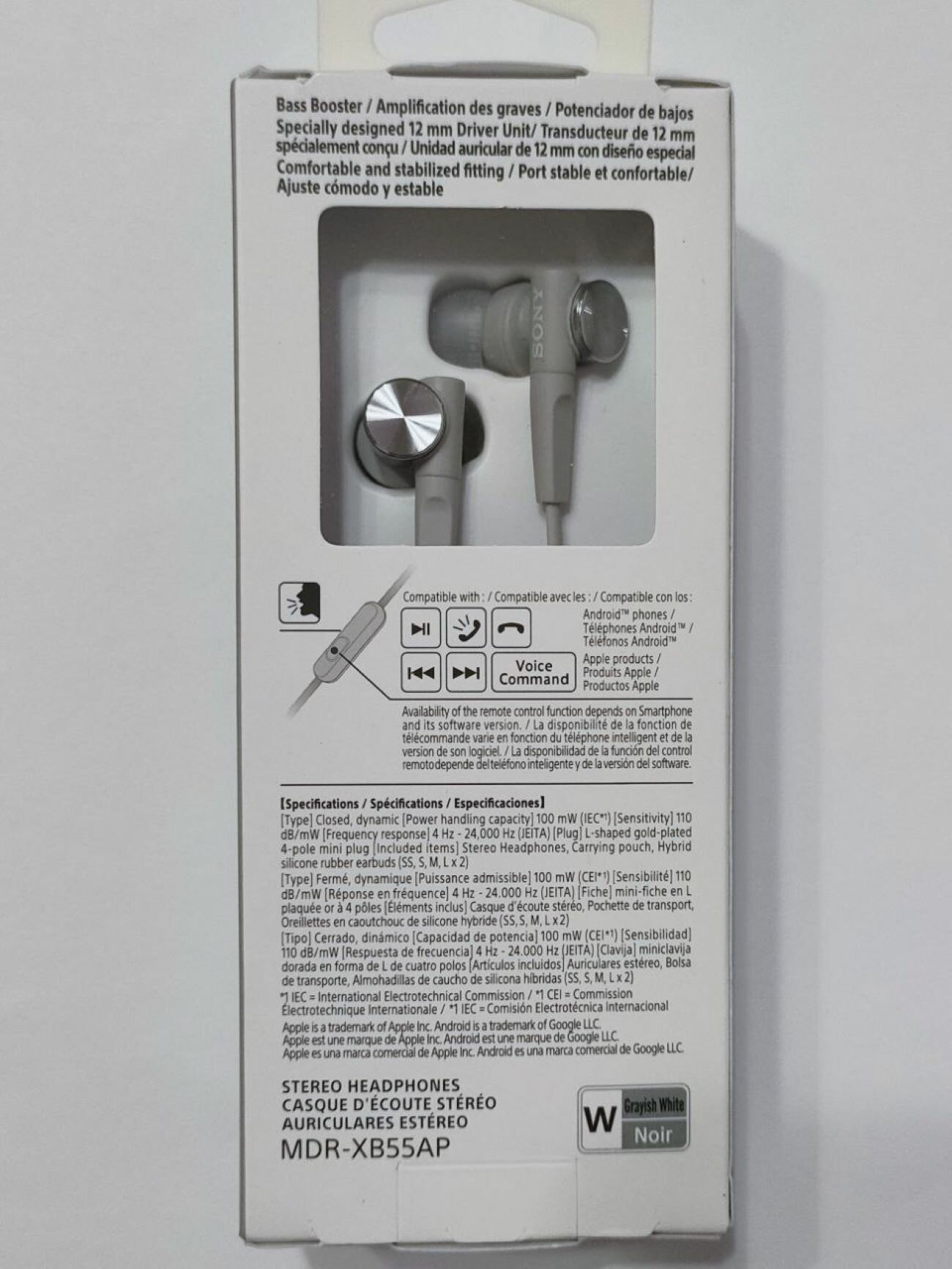 Наушники MDR-XB55AP Extra Bass, бело-серый. Оригинал.
