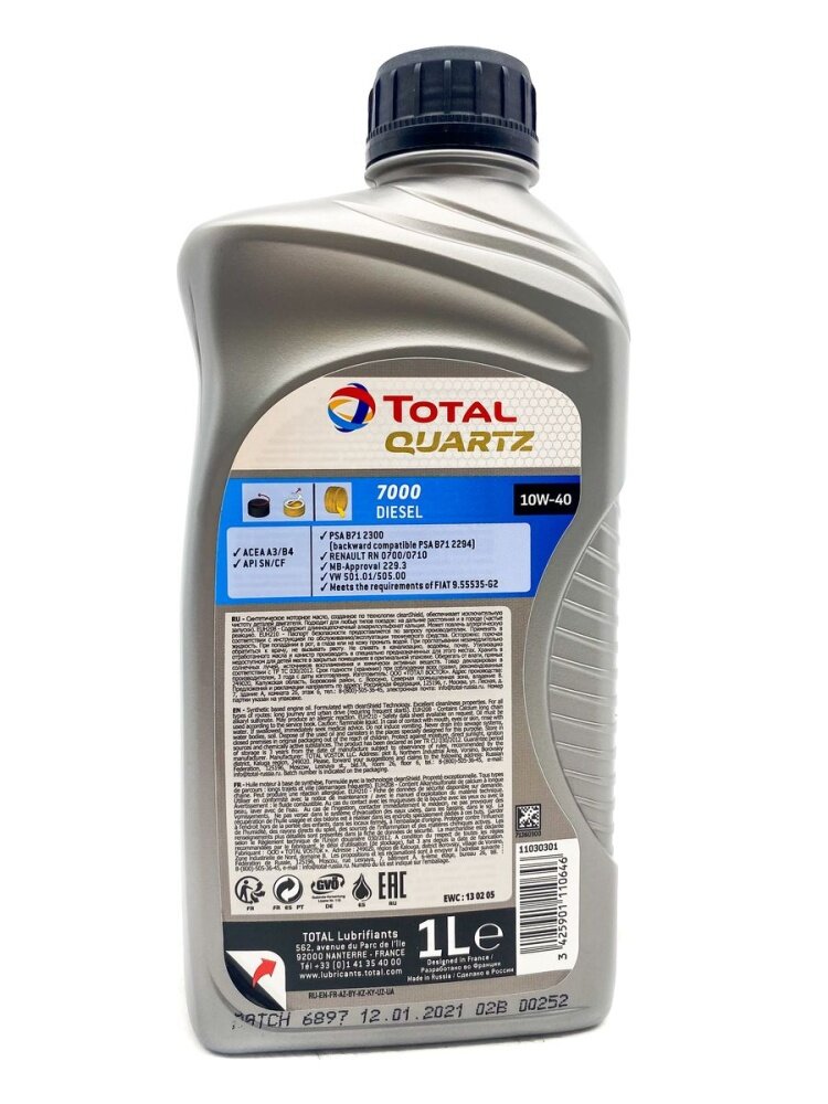 Ниже Вы можете прочитать отзывы на TOTALENERGIES 10740301 QUARTZ D.7000 10W40 SN 18B1L TOT C, ознакомится с подробными характеристиками, посмотреть интересные обзоры и фотографии на TOTALENERGIES 10740301 QUARTZ D.7000 10W40 SN 18B1L TOT C.