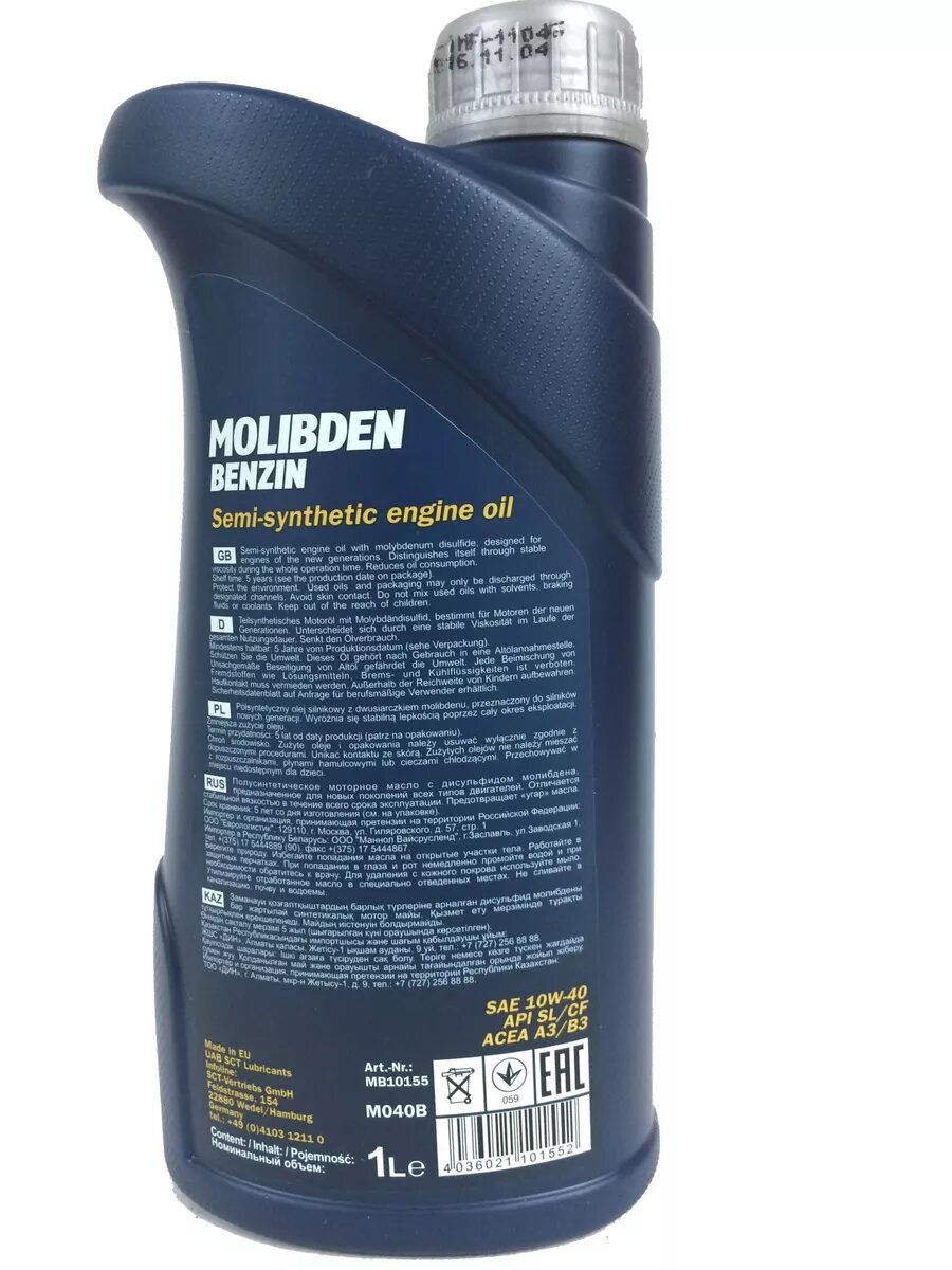 СохранитьMANNOL MB10155 масо мотор. MANNOL MOLIBDEN BENZIN псинт.10W40 интересное: