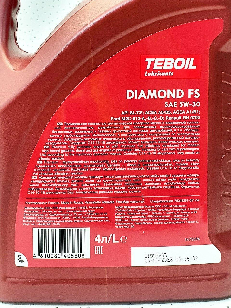 Teboil Рњр°Сѓр»Рѕ Рјрѕс‚Рѕсђрѕрѕрµ Сѓрёрѕс‚Рµс‚Рёс‡Рµсѓрєрѕрµ "Diamond Fs 5W-30", 4Р»