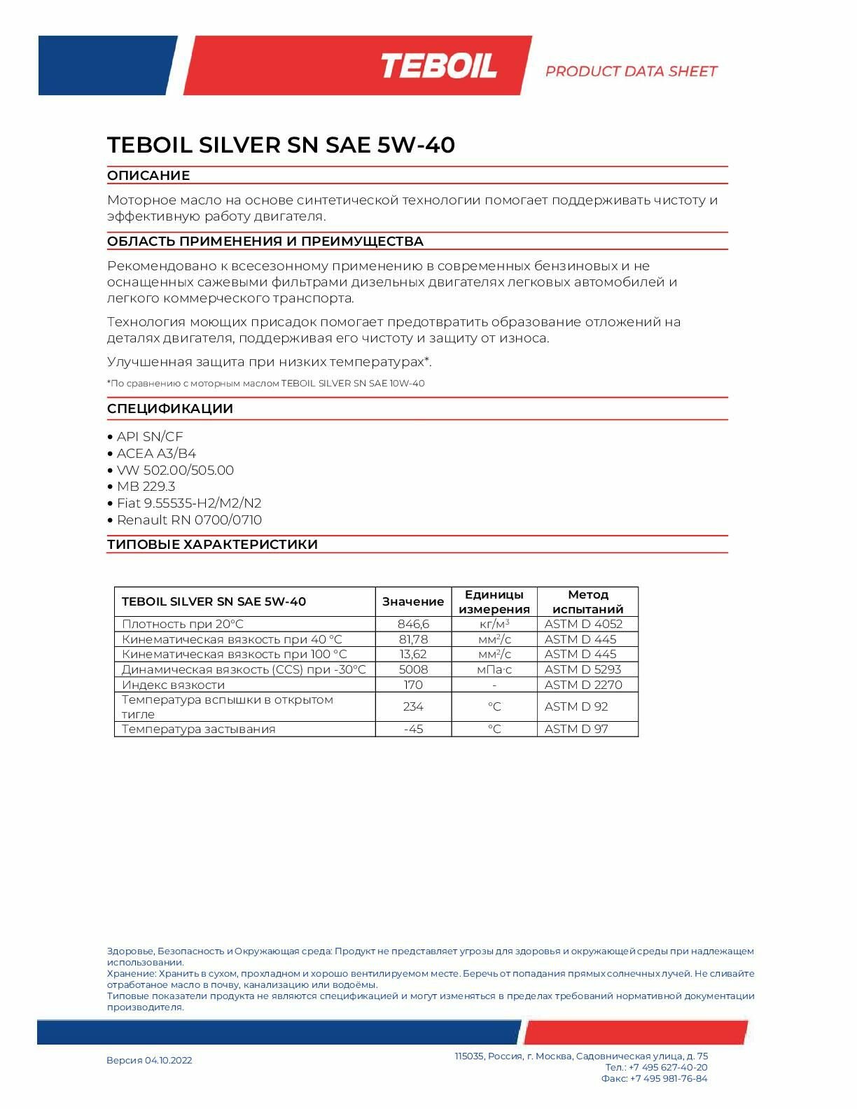 Масло моторное TEBOIL Silver SN 5W40 1л