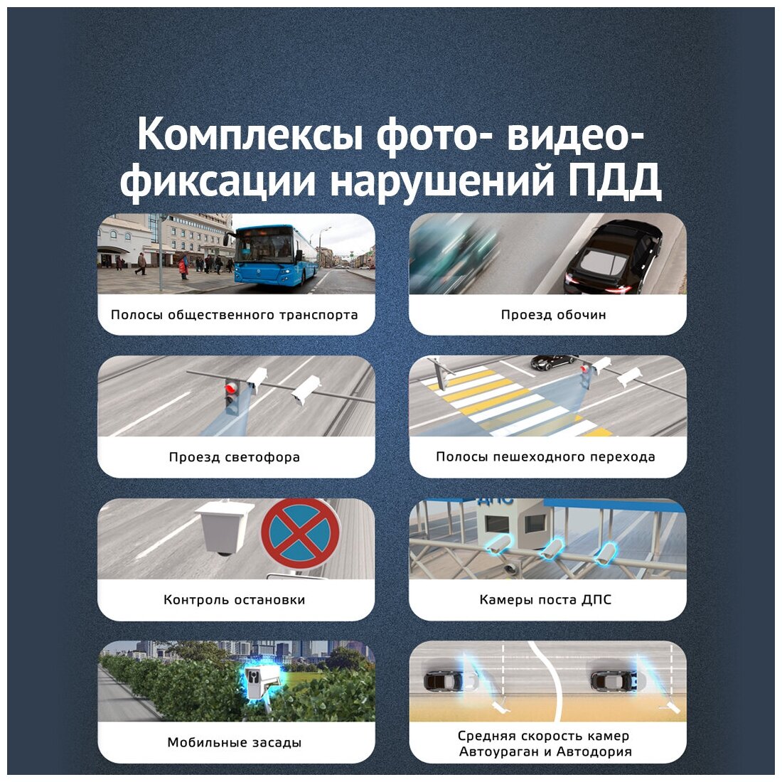 | Обнаружение радаров | "Mesta" / "Multiradar" / "Robot" / "АВТОПАТРУЛЬ" / "Автодория" / "Автоураган" / "Амата" / "Арена" / "Барьер-2М" / "Беркут" |
