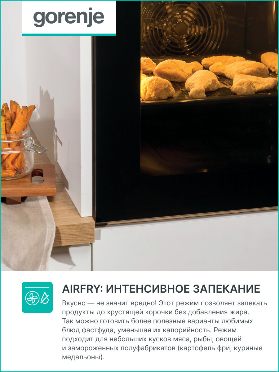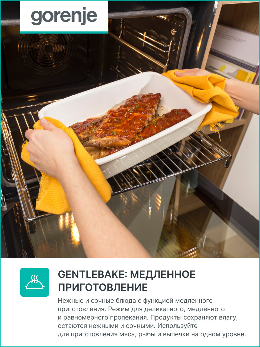 СохранитьЭлектрический духовой шкаф Gorenje BOSB6737E06X, 60 см, А, сенсорный программатор, с грилем и конвекцией, очисткой паром, нержавеющая сталь интересное: