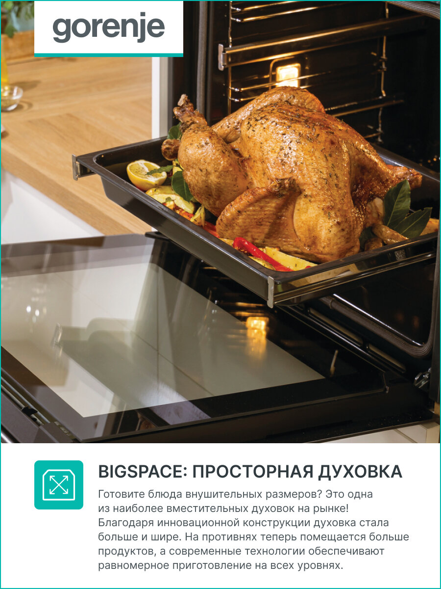 Встраиваемые электрические духовки 60 см GORENJE/ BOSB6737E06X, Духовой шкаф, Полезный объем: 77 л, Сенсорный программатор IconLED, Плавное открывание и закрывание дверцы, Решетка, Частично выдвижные телескопические направляющие на 1-м уровне, Дверца Comp