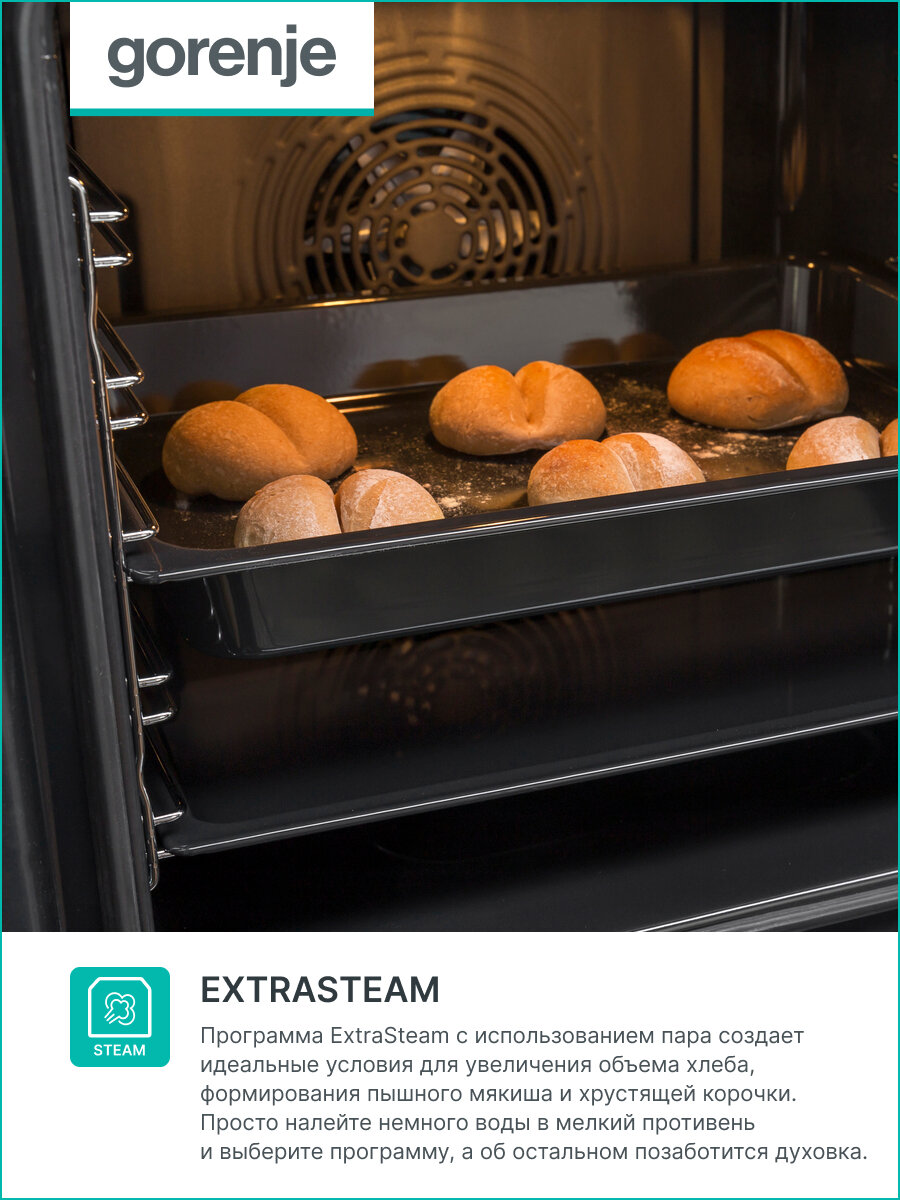Купить Электрический духовой шкаф Gorenje BOSB6737E06X, 60 см, А, сенсорный программатор, с грилем и конвекцией, очисткой паром, нержавеющая сталь