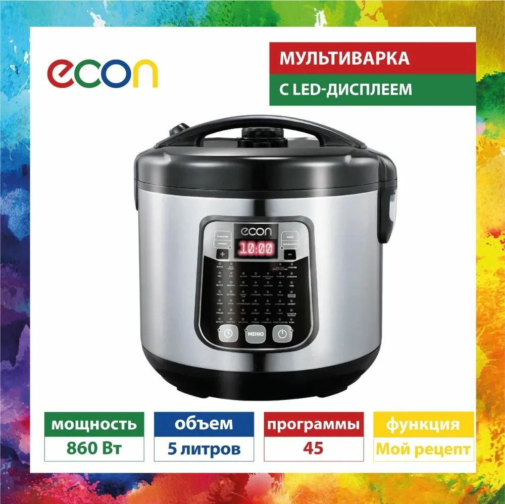 Мультиварка ECON ECO-53MC 5 литров, с антипригарной чашей, 45 автопрограмм и функция "Мой рецепт", 860 Вт