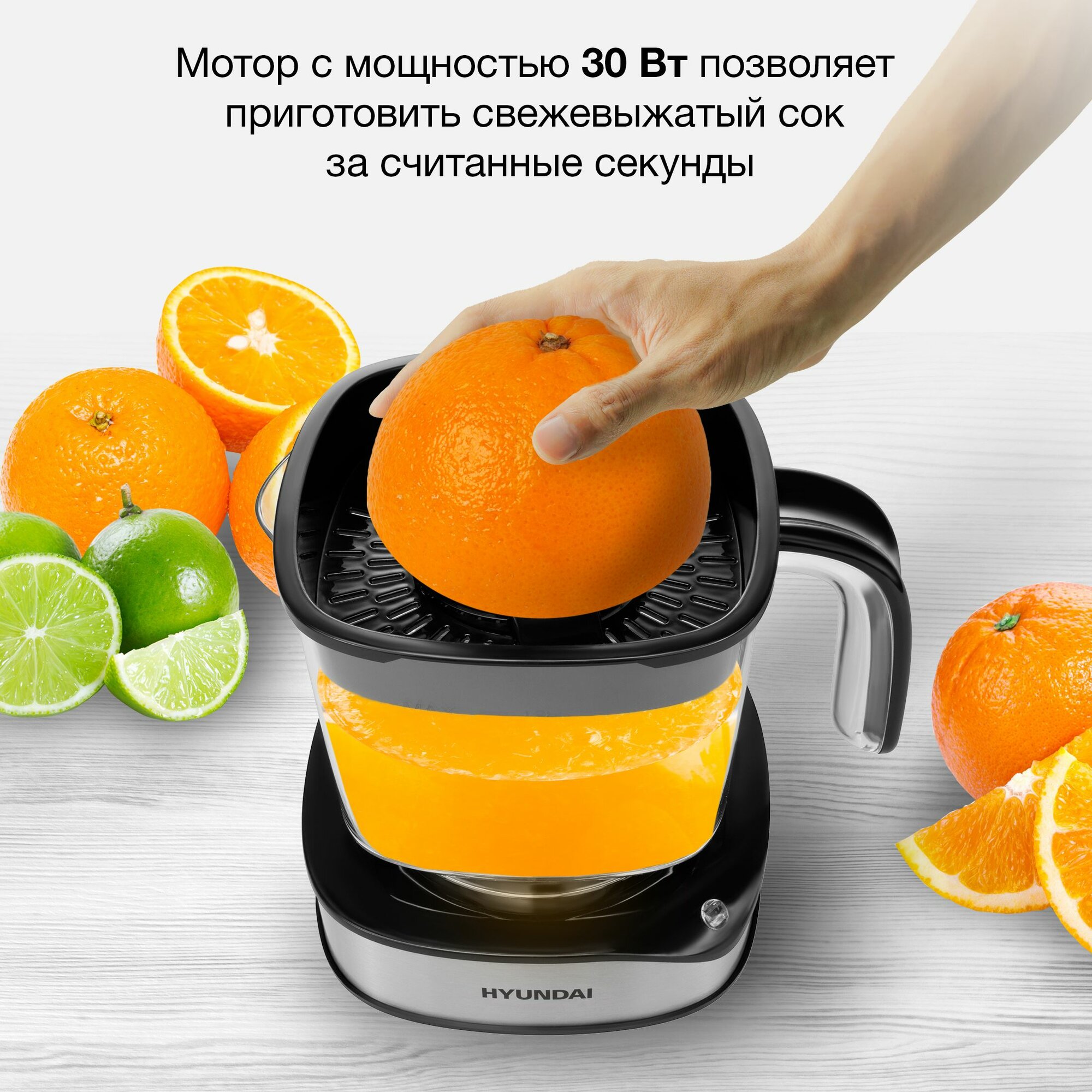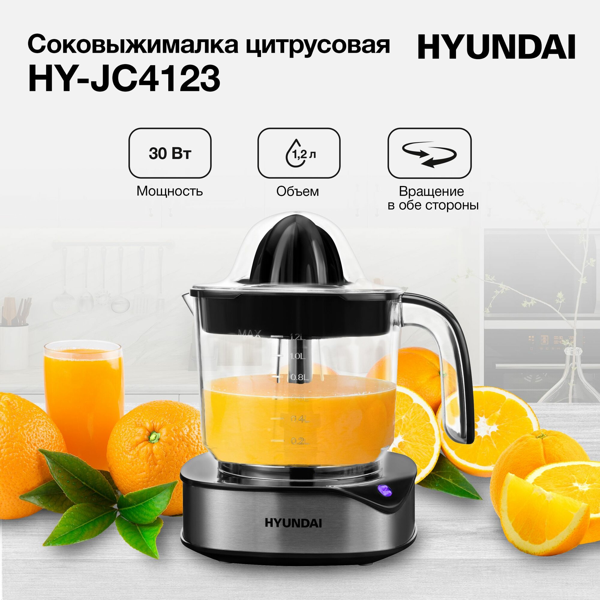 Соковыжималка цитрусовая Hyundai HY-JC4123 30Вт резерв сока: 1200мл. черный/нержавеющая сталь интересное: