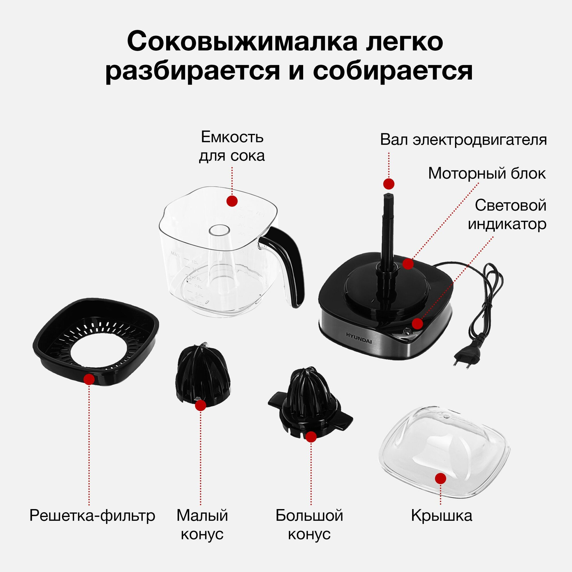 Соковыжималка цитрусовая HYUNDAI HY-JC4123 серебристый/черный