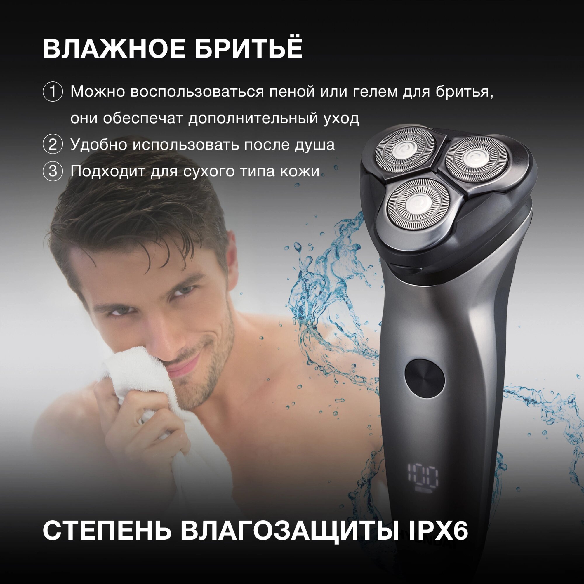 Бритва роторная Hyundai H-SH8099 серый интересное: