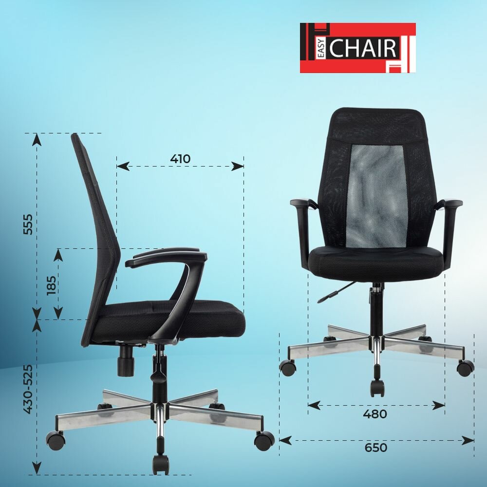 Кресло компьютерное Easy Chair 225, офисный стул на колесиках, искусственная кожа/сетка, черный
