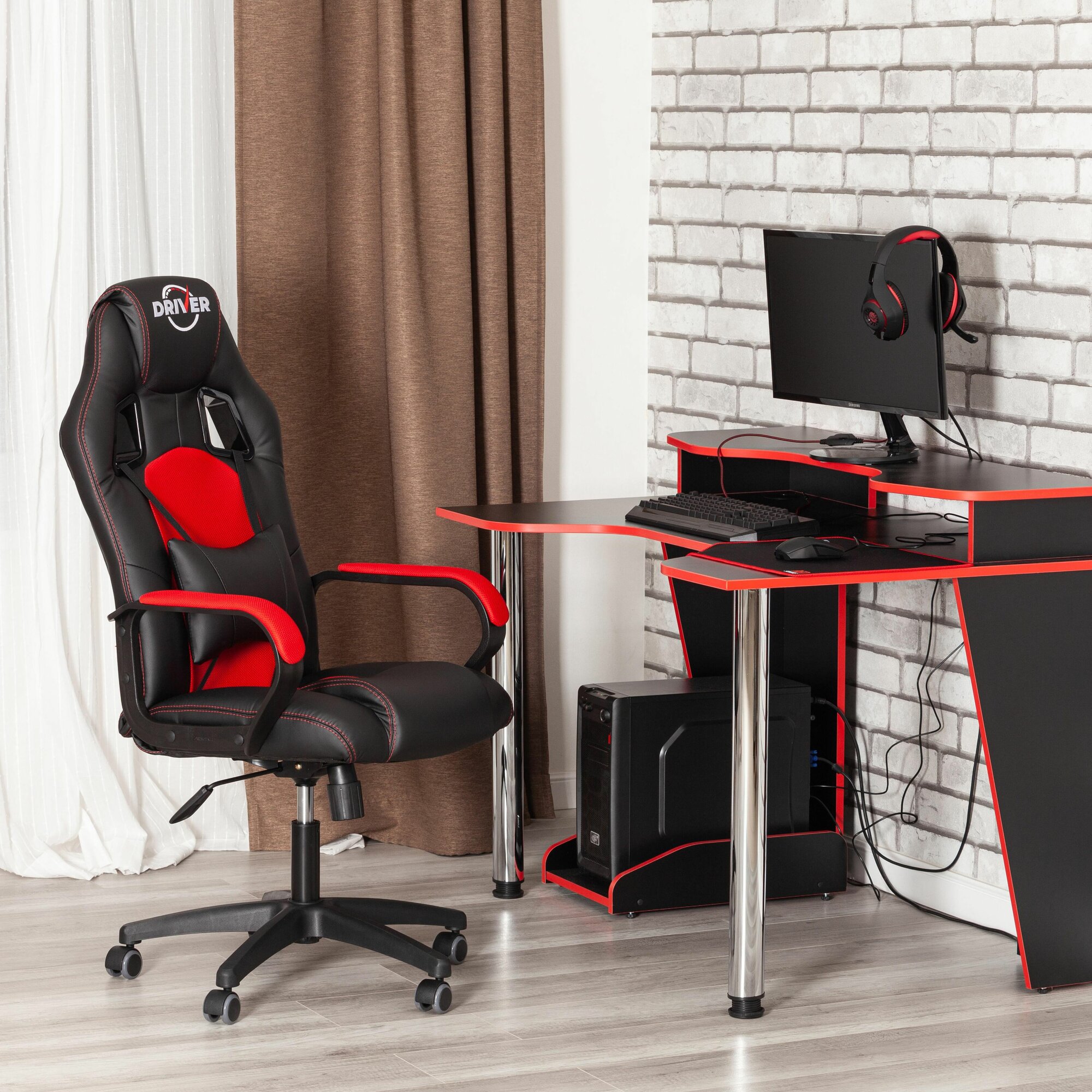 Кресло компьютерное игровое TetChair DRIVER кож/зам/ткань, черный/красный