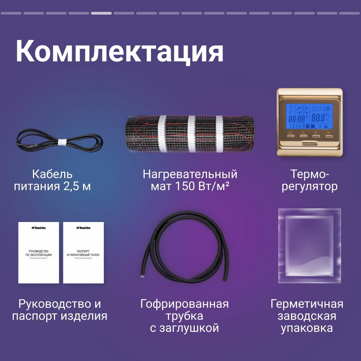 Теплый пол Nunicho 1 м2 с программируемым золотистым терморегулятором в комплекте