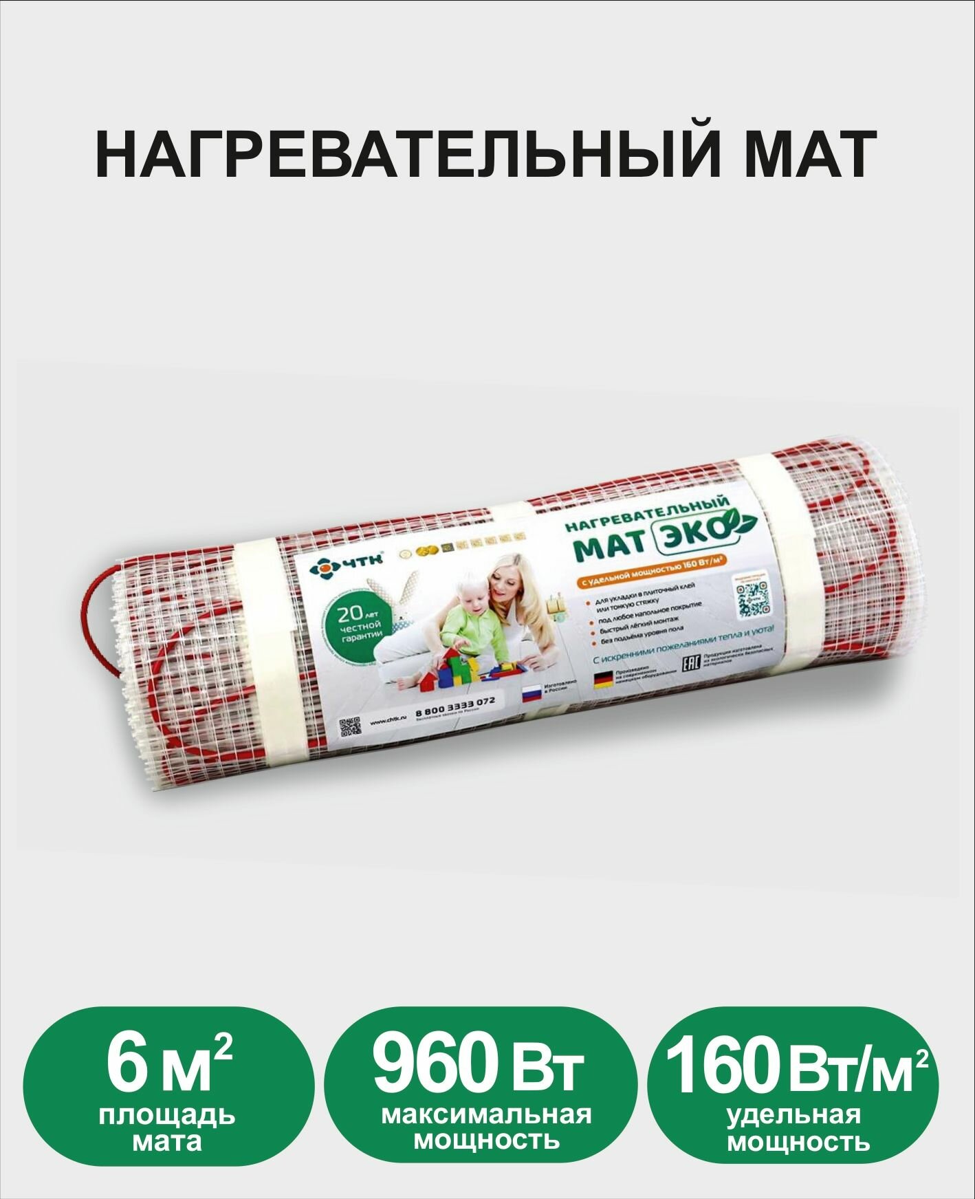 Теплый пол ЧТК ЭКО. Нагревательный мат 8 кв.м.