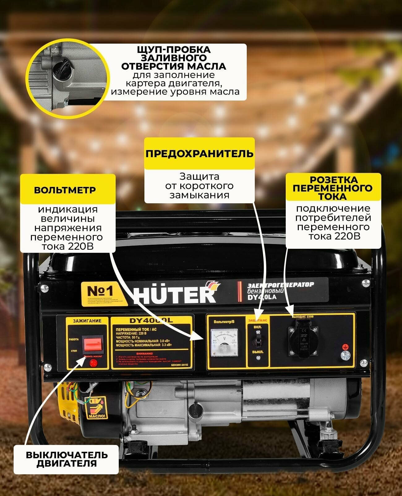 Бензиновый генератор Huter DY4,0LA, 220 В, 3.3кВт [64/1/74]
