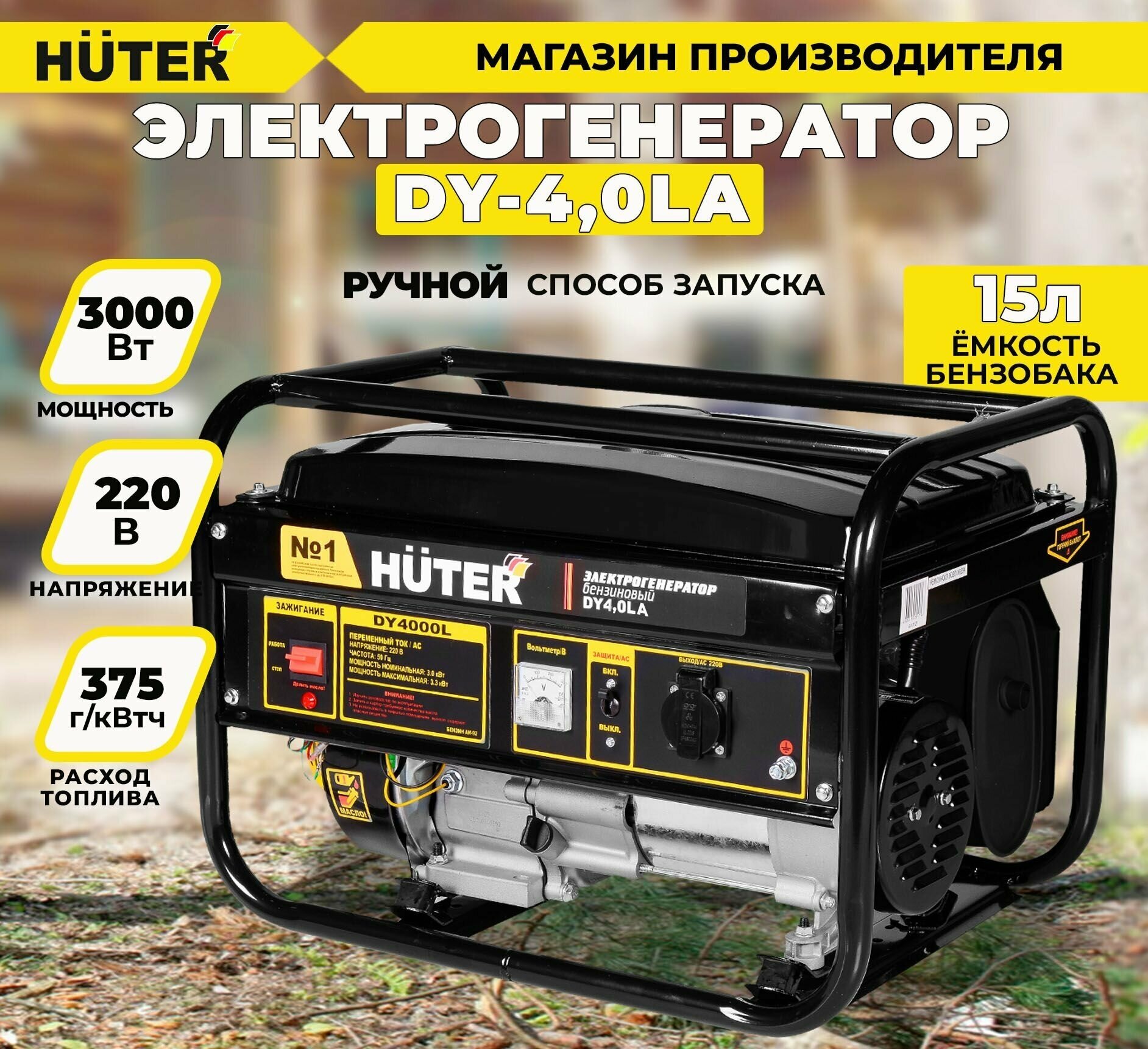 Купить Бензиновый генератор Huter DY4,0LA , 3.3 кВт, ручной стартер