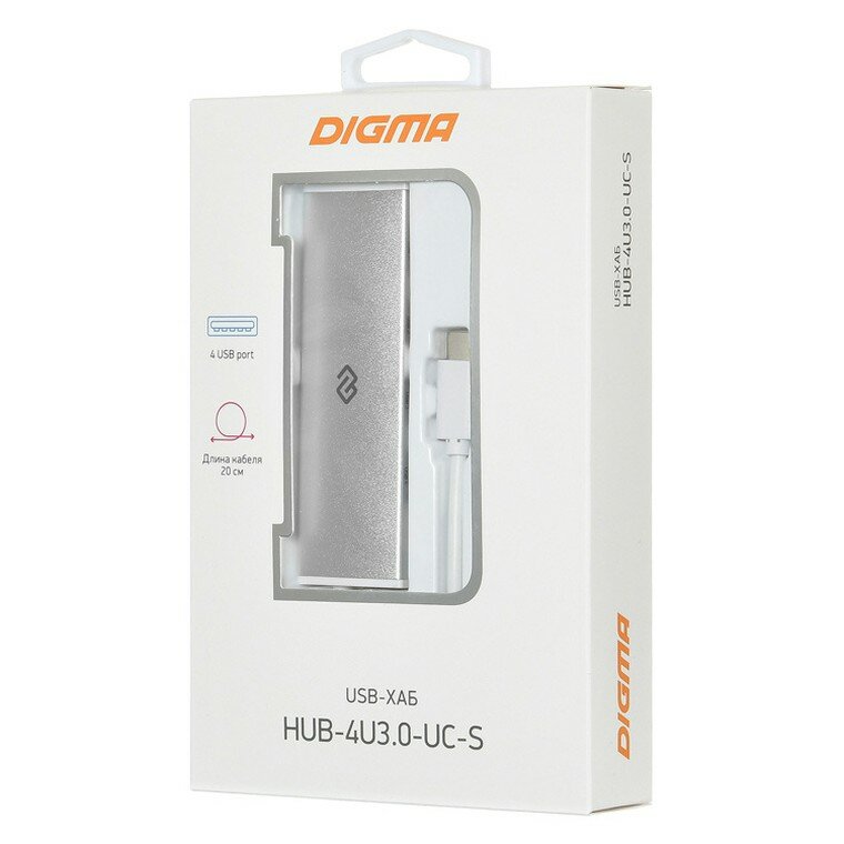 Купить Разветвитель DIGMA USB, 4 порта, серебристый (HUB-4U3.0-UC-S)
