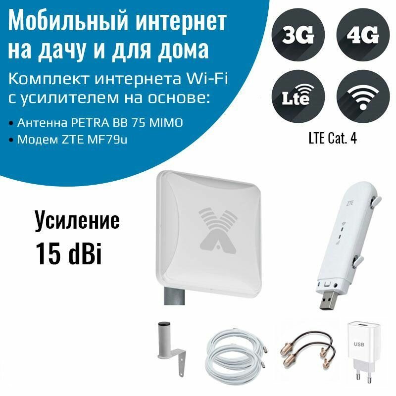 Интернет для дачи комплект 4G усилитель антенна Антэкс PETRA BB mimo с WiFi модемом ZTE MF79u интересное: