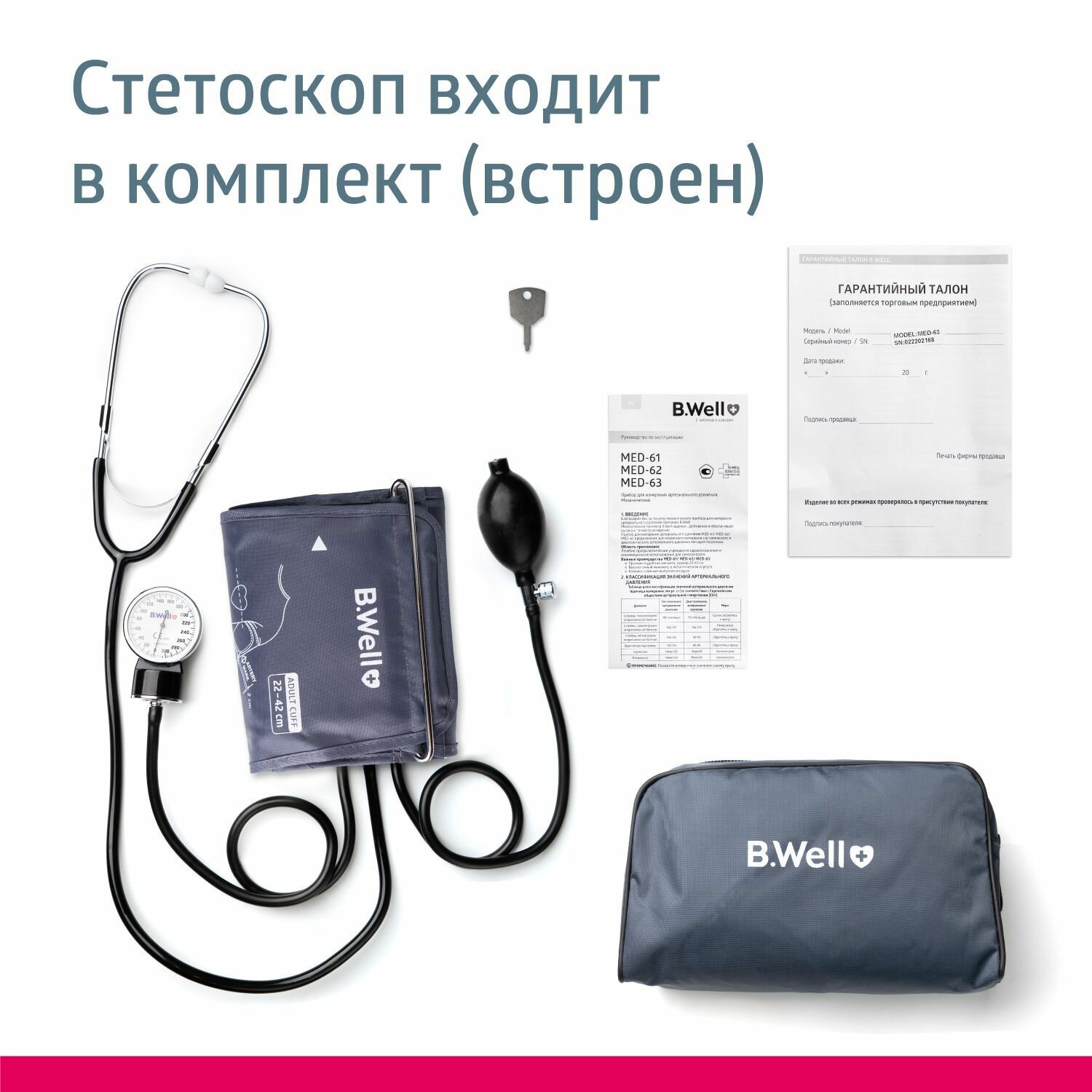 B.Well MED-63 / БиВелл - механический тонометр с манжетой с кольцом, с встроенным стетоскопом