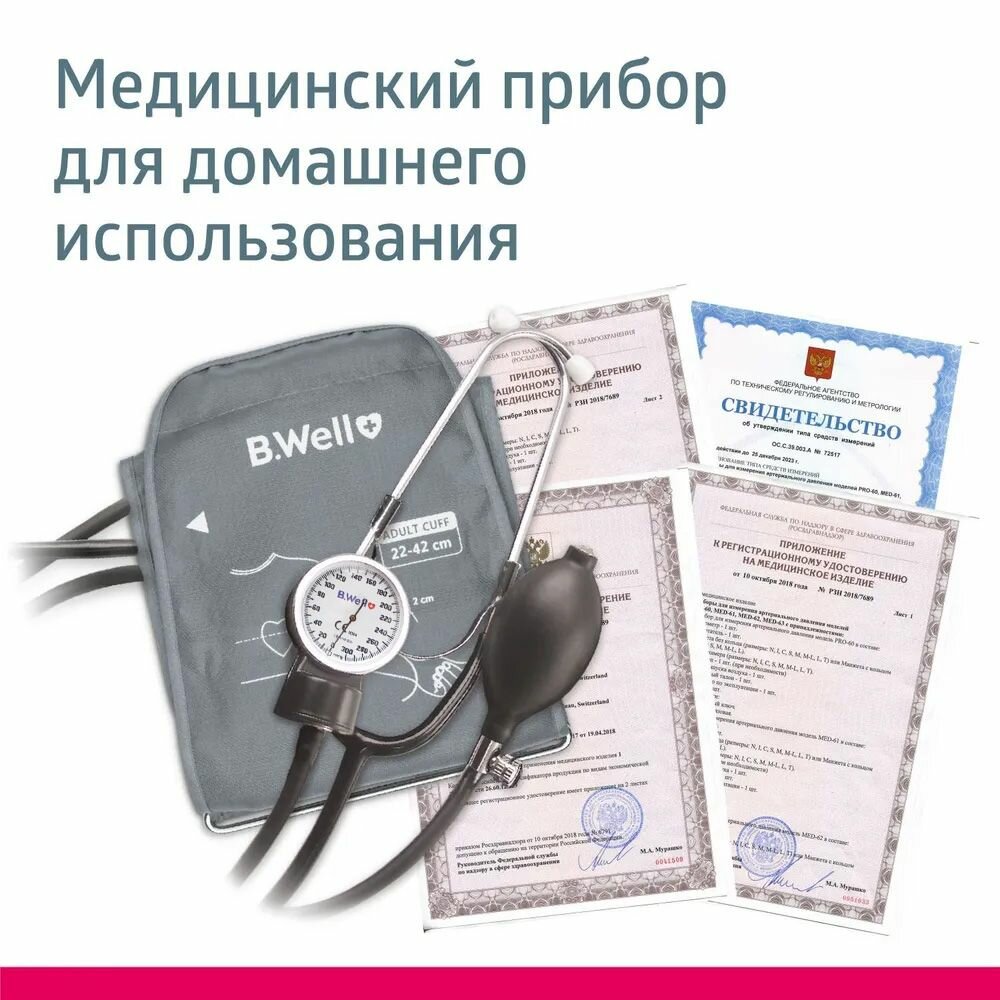 Тонометр B.Well MED-63 механический профессиональный, манжета с кольцом 22-42 см, встроенный стетоск