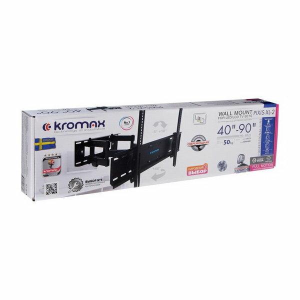 Кронштейн для телевизора Kromax PIXIS-XL-2, 40-90", настенный, поворот и наклон, черный [90220]