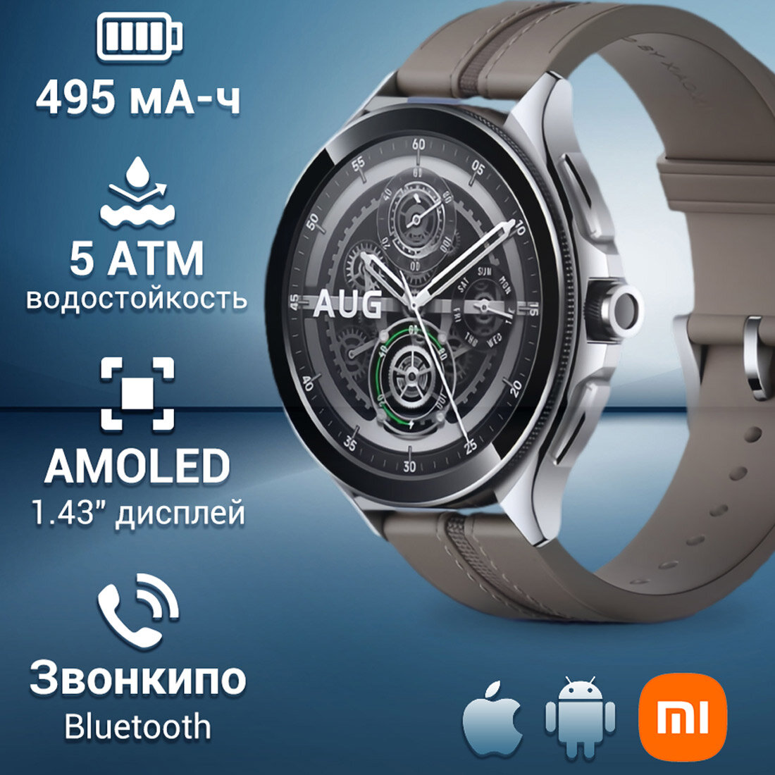 Часы наручные Xiaomi Смарт-часы Xiaomi Watch 2 Pro - Bluetooth Silver Case with Brown Leather Strap .