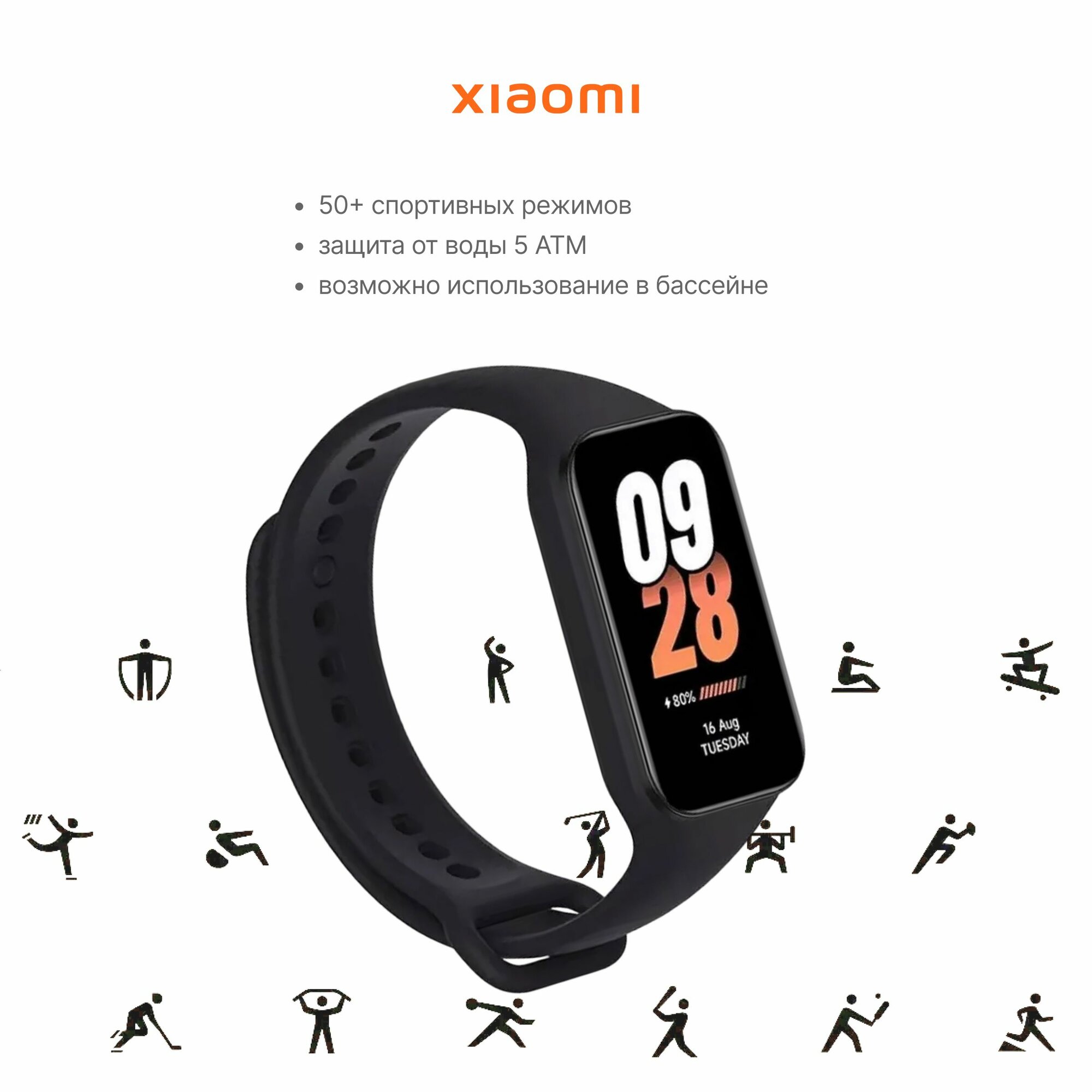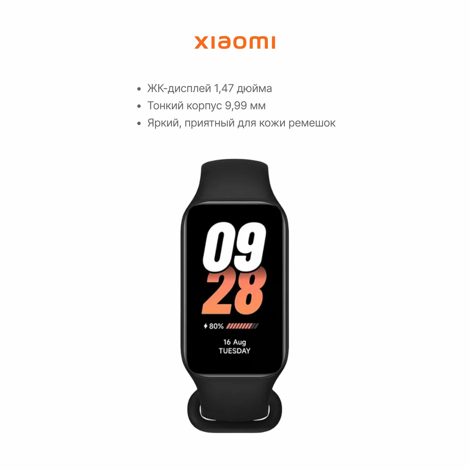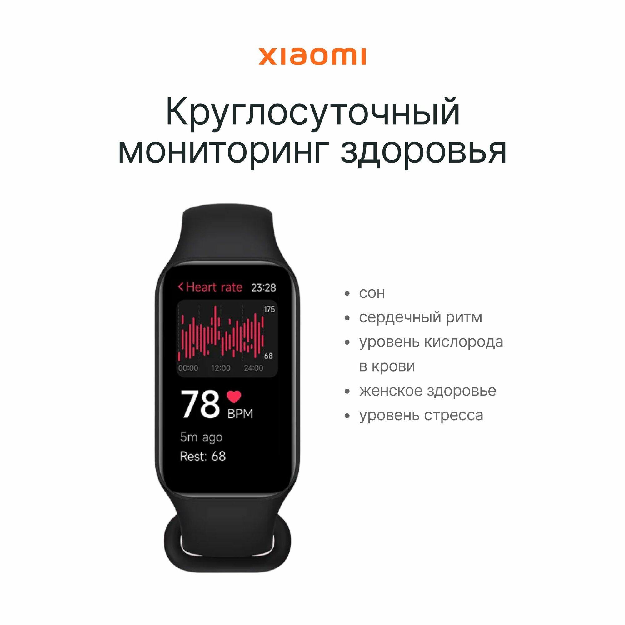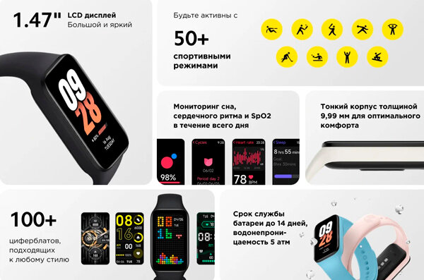 | Дополнительная информация | мониторинг стресса; отслеживание женского здоровья; 110+ фитнес-режимов; голосовой ассистент Xiao AI |