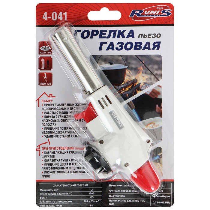 Горелка газовая (лампа паяльная) портативная 1,1КВТ цанг пьезорозжиг БЕЛ RUNIS
