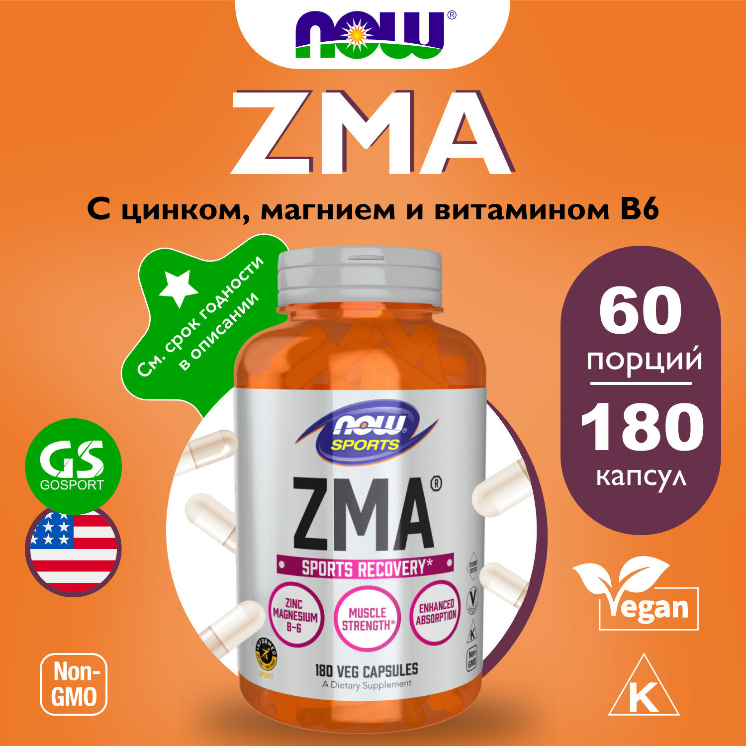 NOW ZMA, 180 капс