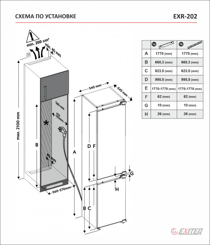 Встраиваемый холодильник EXITEQ EXR-202