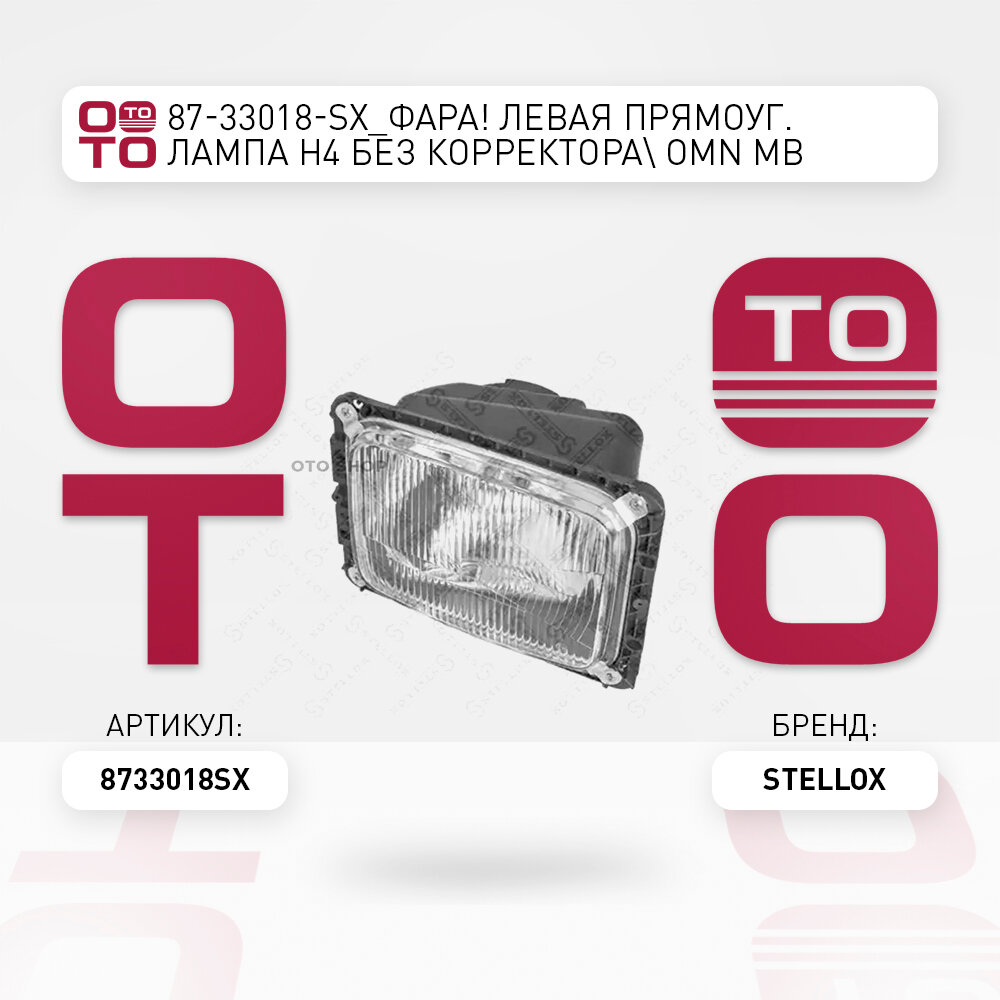 87-33018-Sx_фара! Левая Прямоуг. Лампа H4 Без Корректора Omn Mb 508/609/814/914/1120/1317/1514-20_ак Крр Stellox арт. 87-3301...