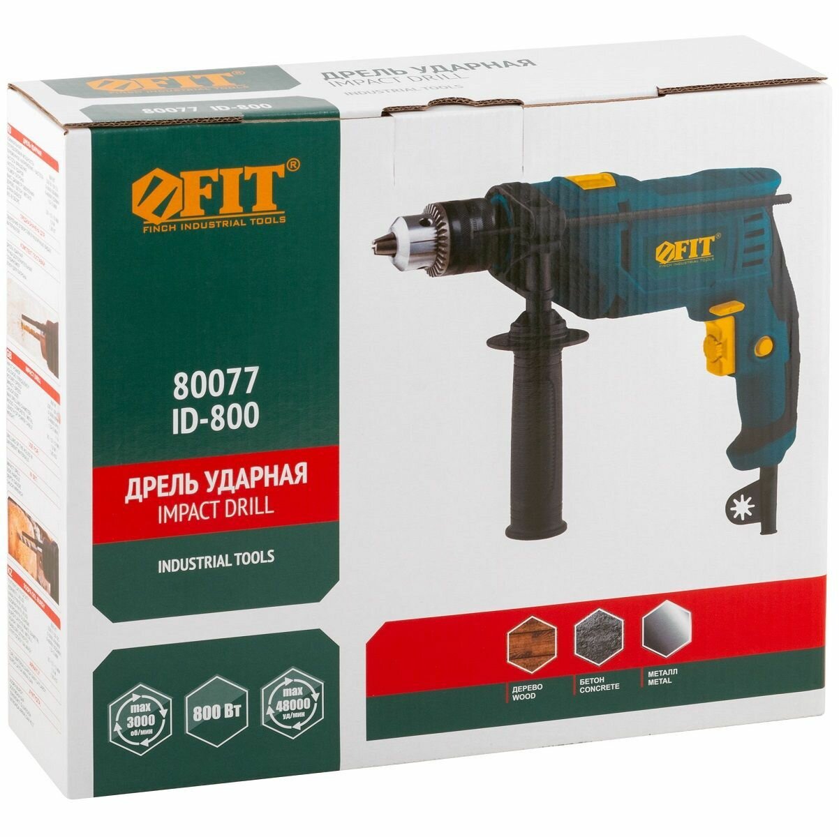 Купить FIT Дрель ударная 800 Вт, 0-3000 об/мин, КлП 13мм, рез. накл., коробка 80077