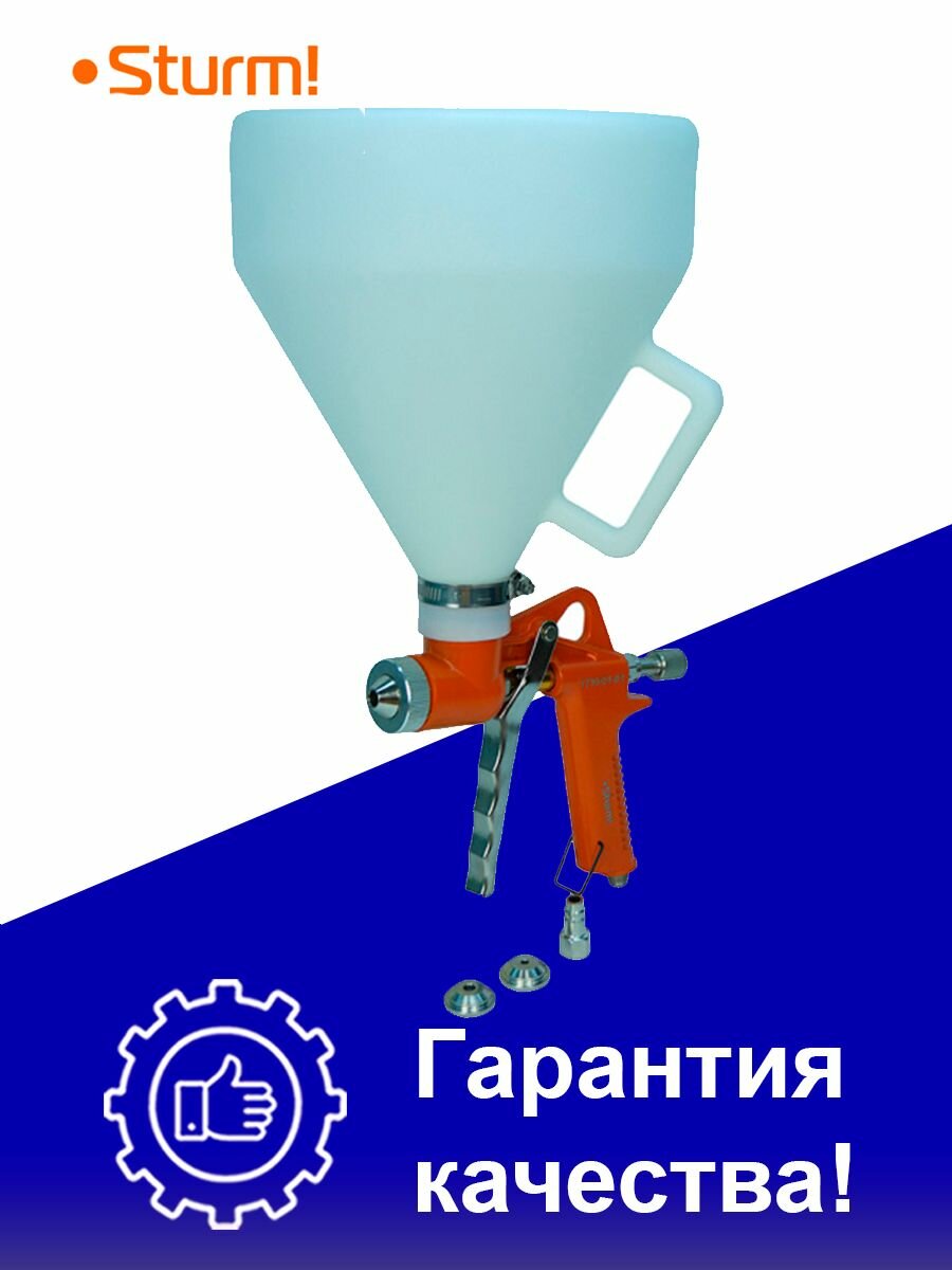 Краскопульт пневматический картушный для штукатурки, бак 5 л, сопла 4, 6, 8 мм Sturm!