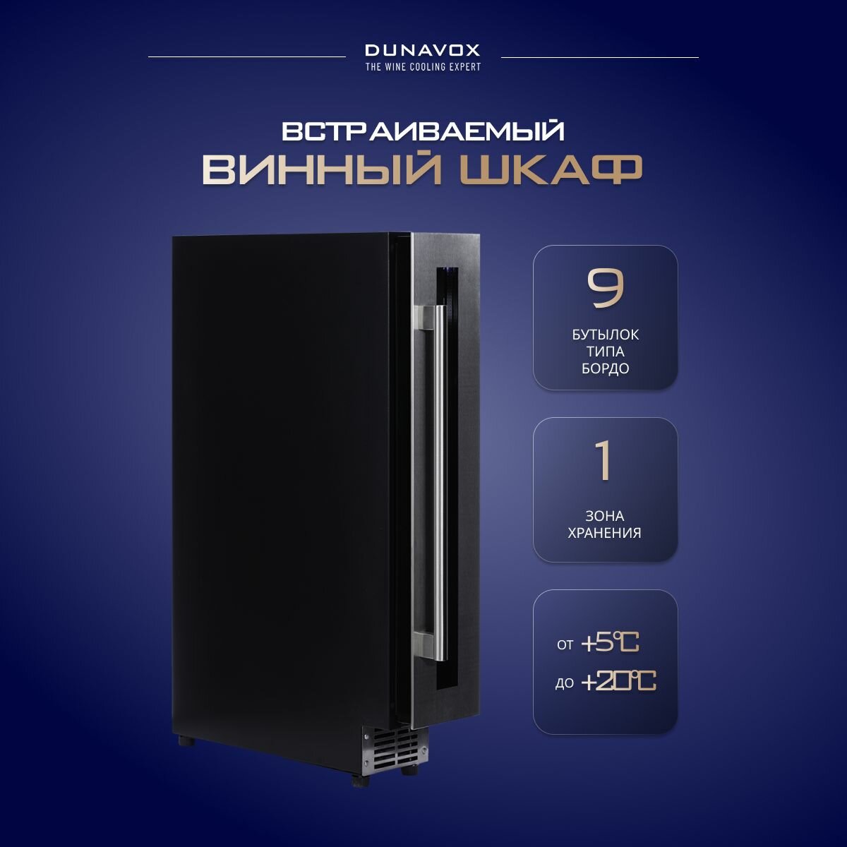 Встраиваемый винный шкаф Dunavox DAUF-9.22SS (компрессорный встраиваемый / отдельностоящий холодильник для вина на 9 бутылок)