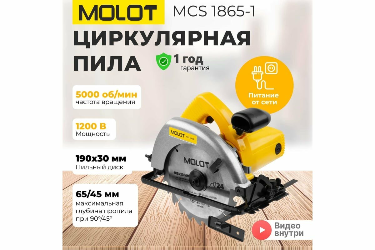 Купить Циркулярная пила 1200 Вт 185 мм до 65 мм MOLOT MCS 1865-1 (0329138)