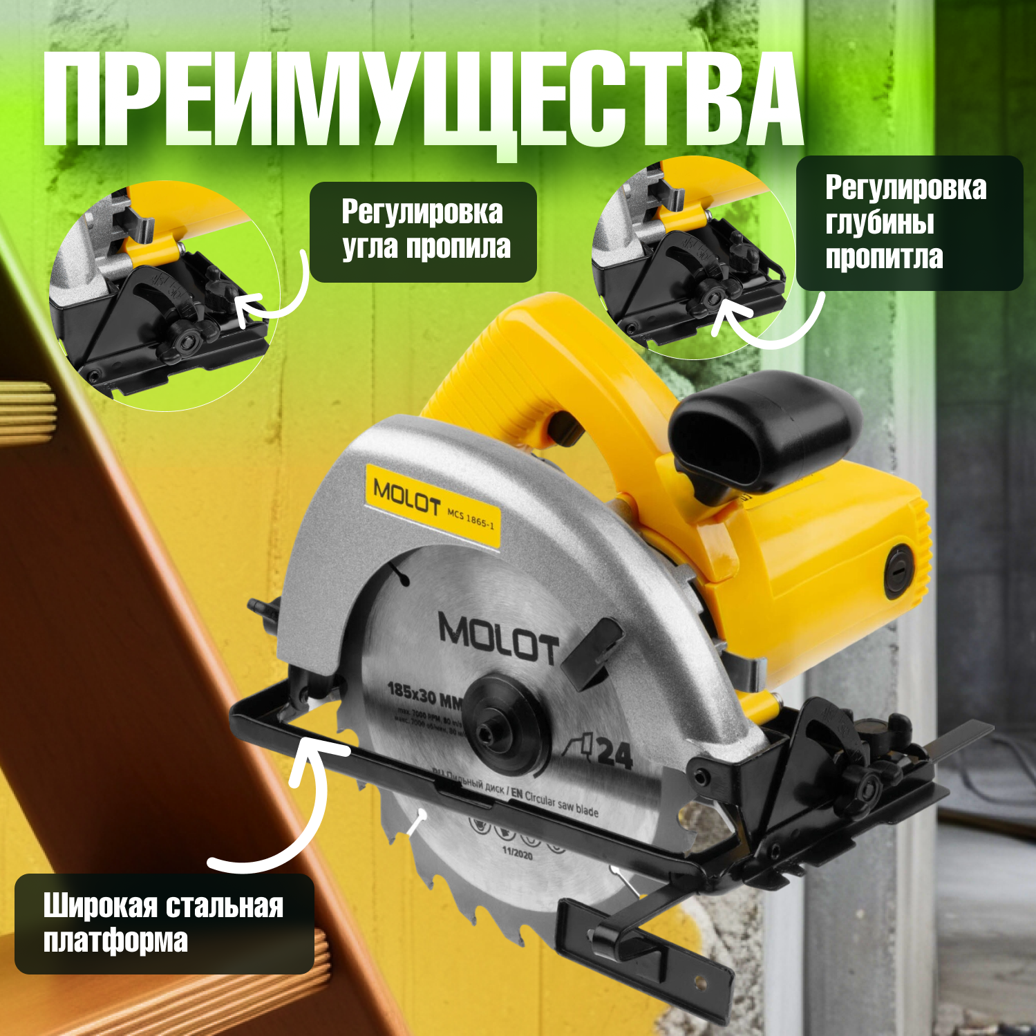 Циркулярная пила MOLOT MCS 1865-1 1200 Вт, 185х30 мм, до 65 мм (0329138)