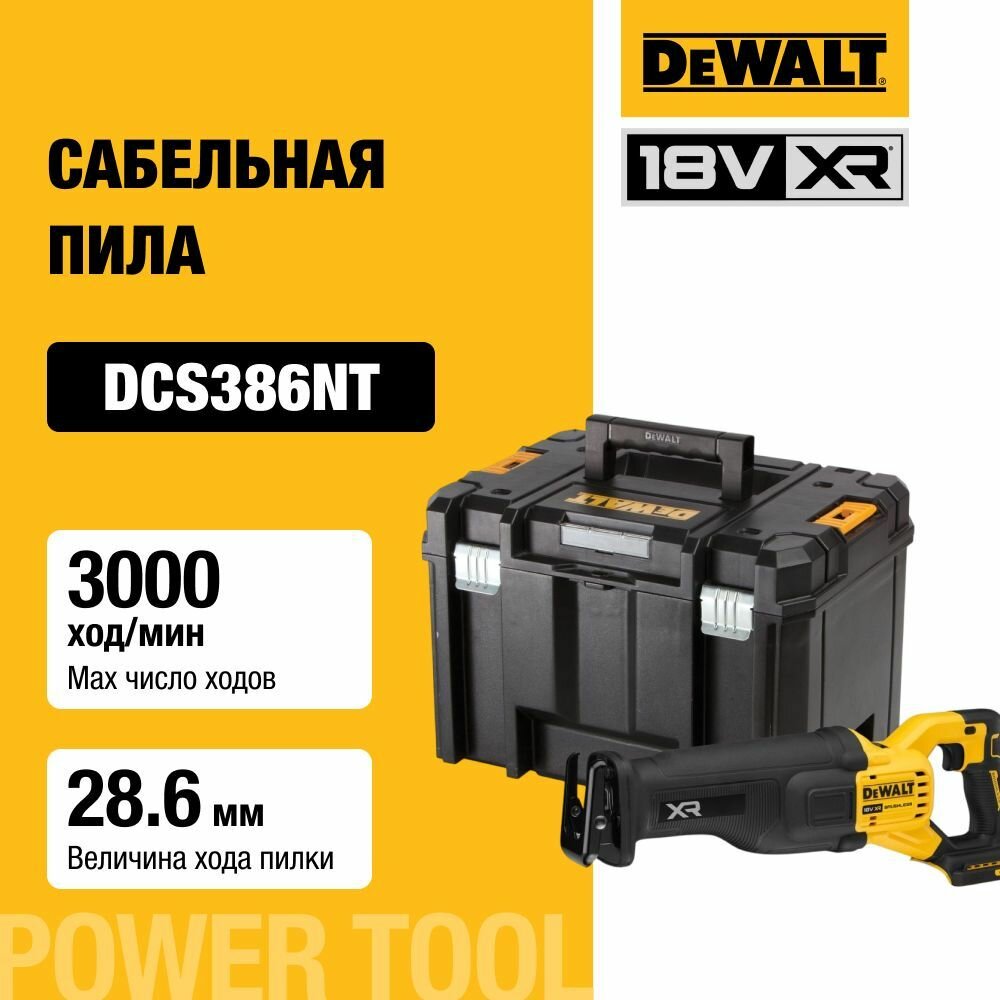 Купить Аккумуляторная сабельная пила DEWALT DCS386NT, 18/54 В, 3000 ход/мин, 28.6 мм, без АКБ и ЗУ, в кейсе TSTAK