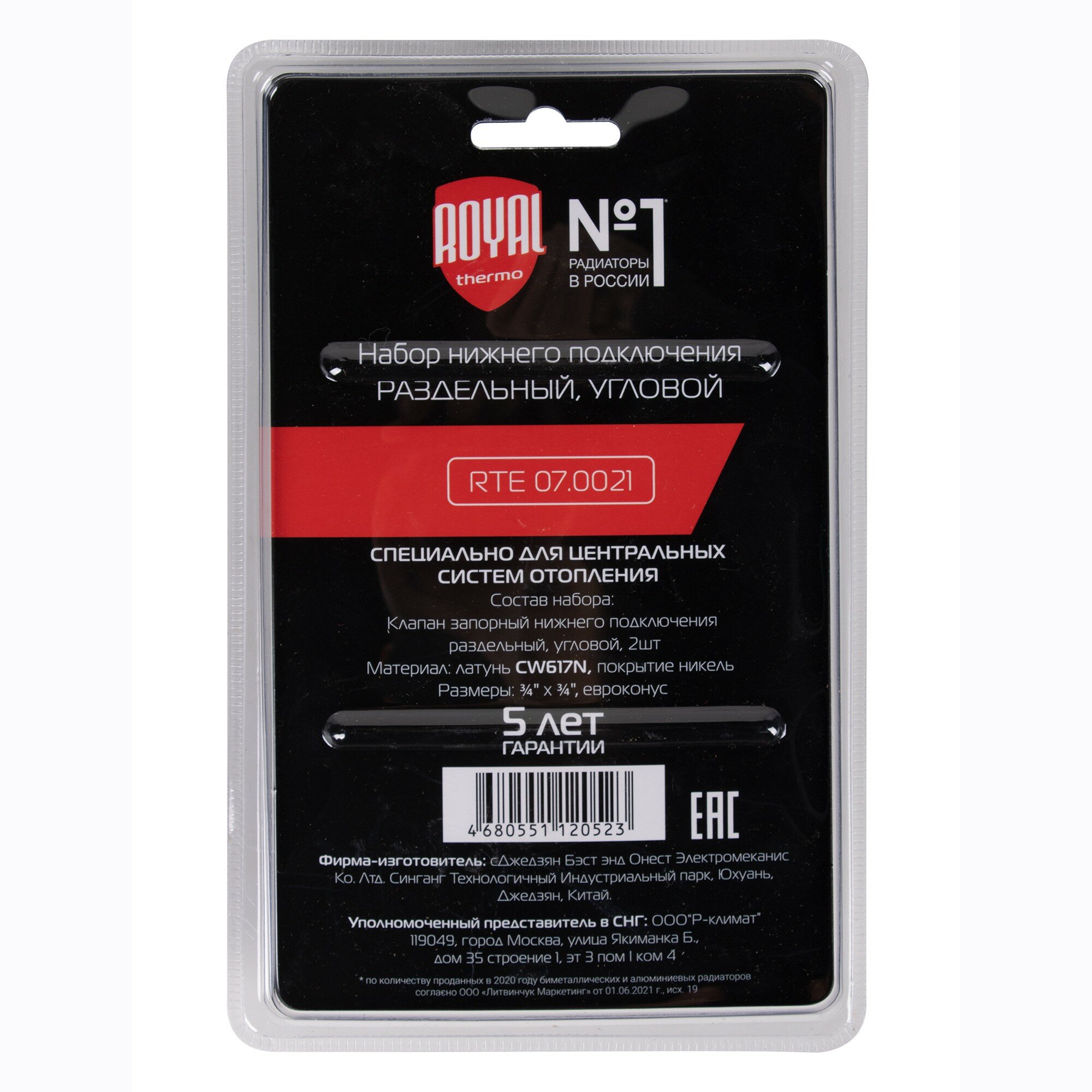 Купить Набор нижнего подключения Royal Thermo угловой раздельный 3/4х3/4ЕК (RTE 07.0021)
