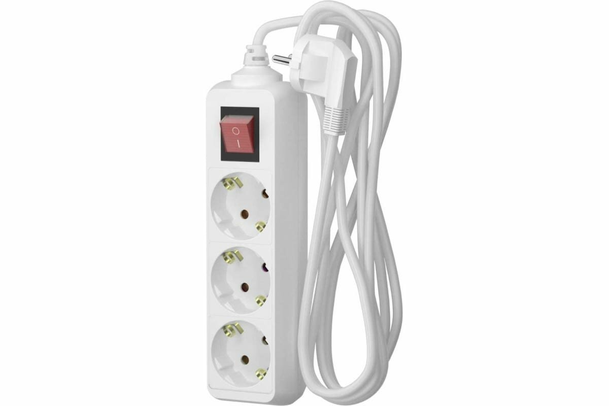 Удлинитель сетевой для розетки фотон 16А 5 метров 3 розетки с выключателем с заземлением белый, ГОСТ