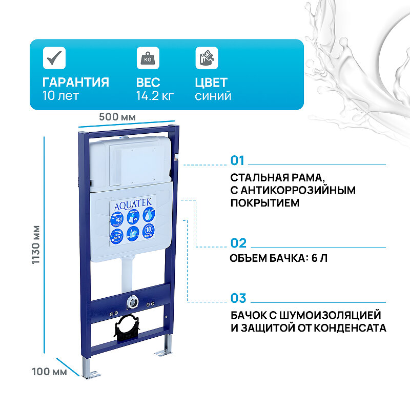 Инсталляция Aquatek Standart 50 INS-0000012 для унитаза без клавиши смыва
