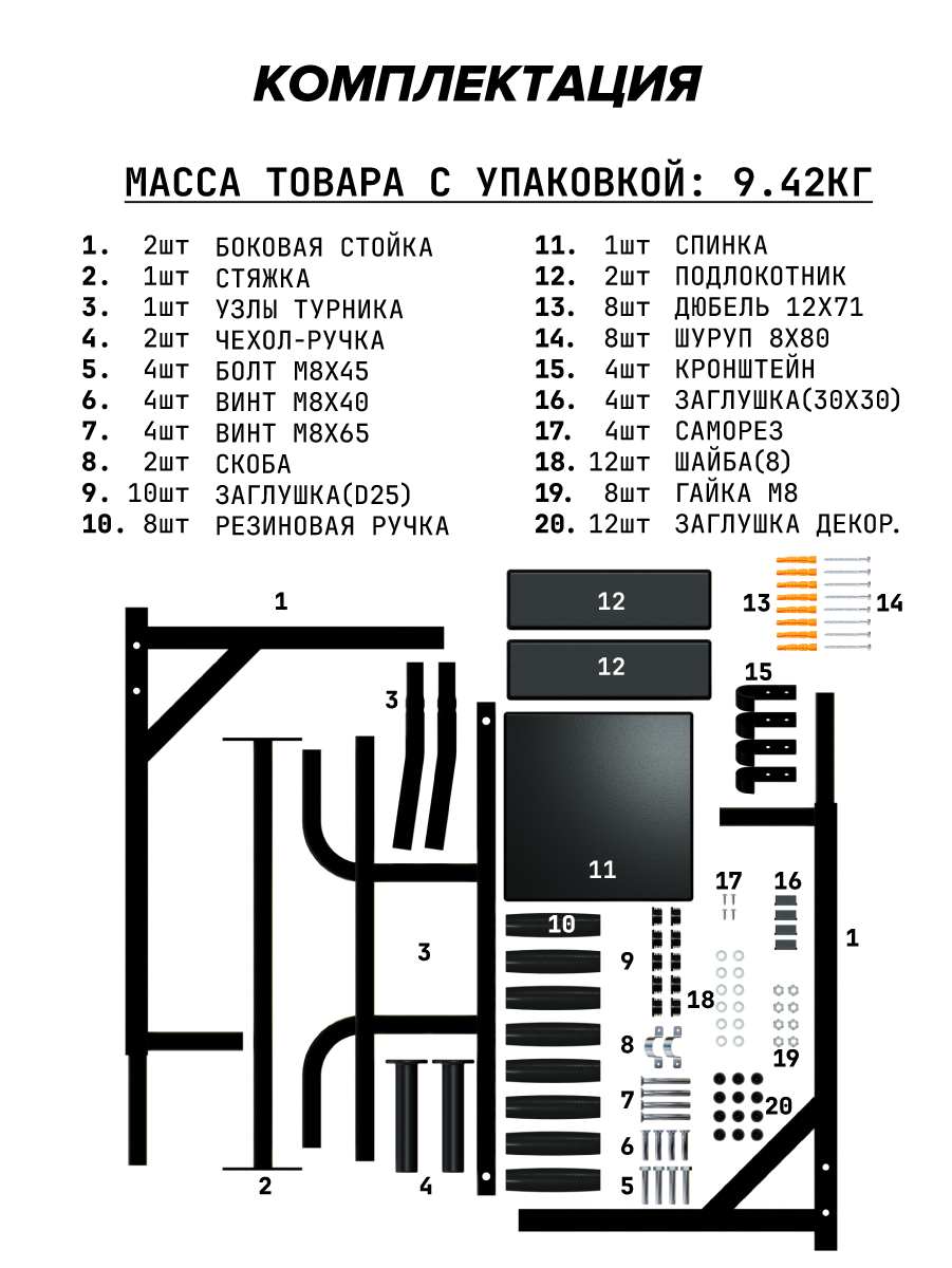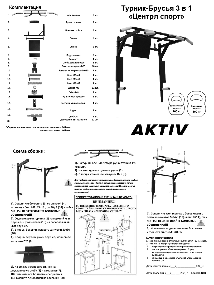 Турник настенный 3 в 1 брусья пресс тренажер для спорта дома, усиленный, нагрузка 300кг центрл спорт разборный Aktiv интересное: