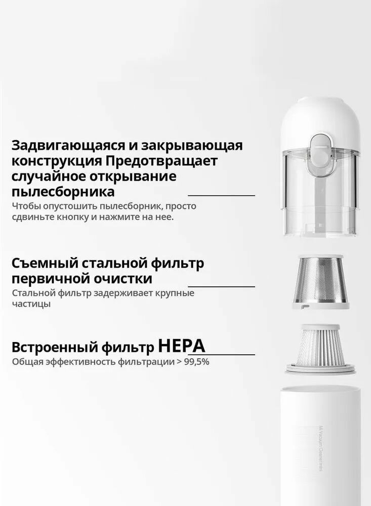 Купить Портативный пылесос Xiaomi Mijia Mi Vacuum Cleaner mini CN (20000Па)инспираторный и выдыхать