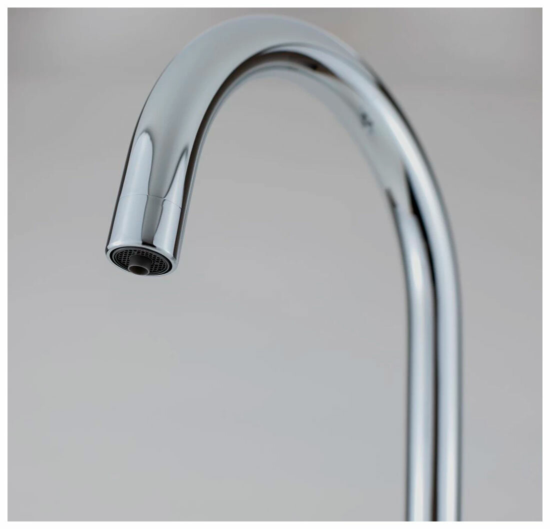 | Плюсы: | Только в дизайне: удобный высокий излив, канал фильтрованной воды в едином корпусе, удобные для мокрых мыльных рук переключатели |