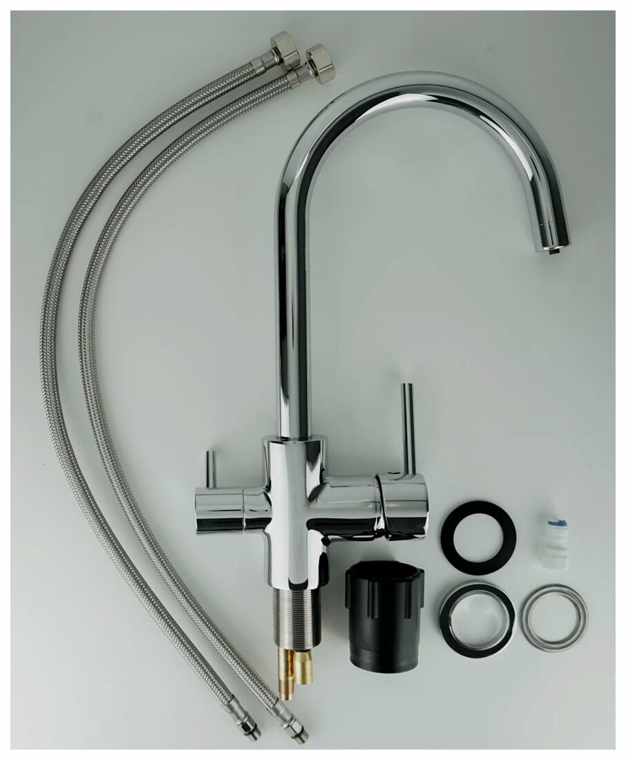 ESKO Смеситель для кухни (мойки) с высоким поворотным R-изливом с подключением к фильтру с питьевой водой, хромированный