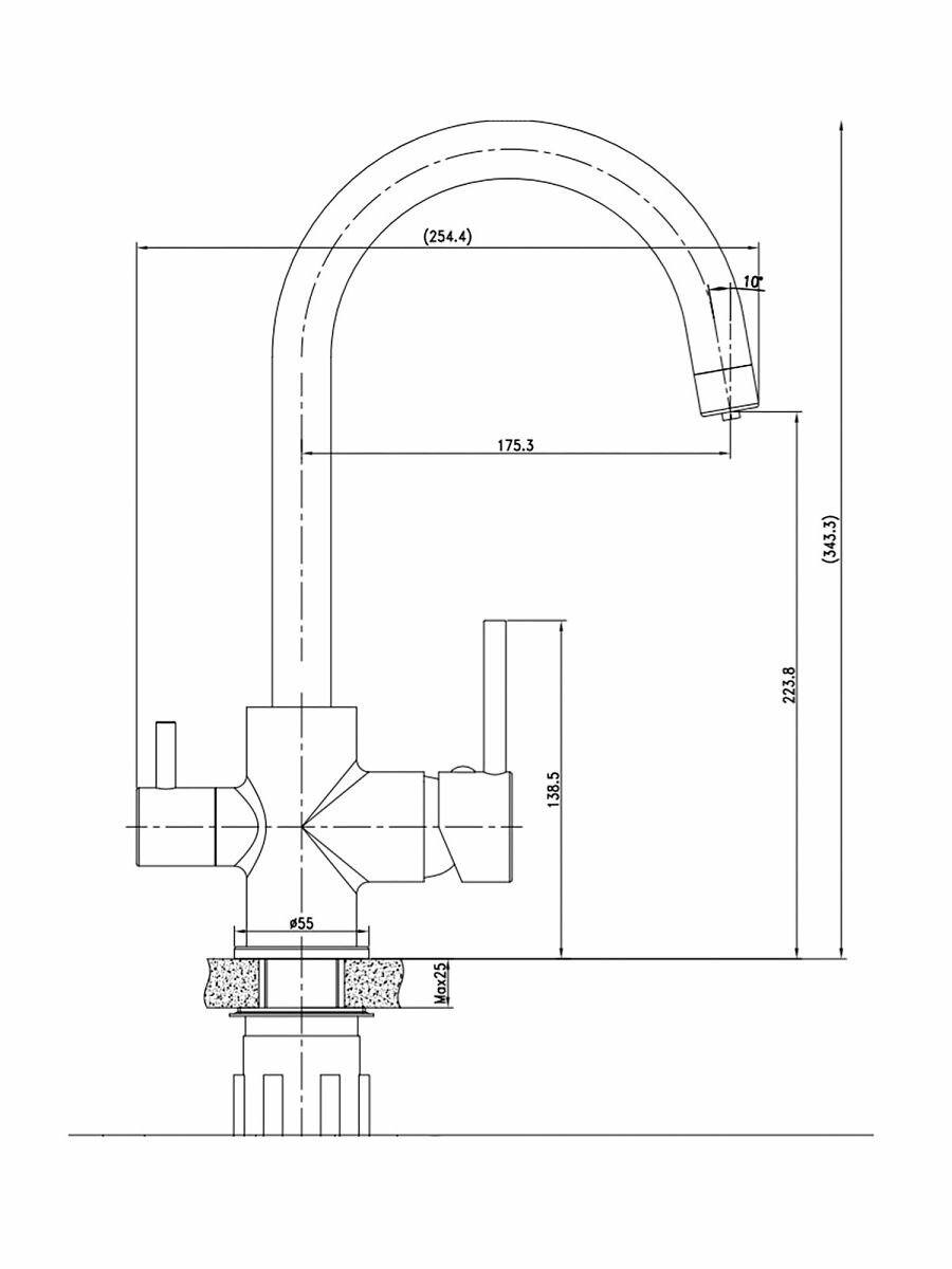 Смеситель для кухни 35к ESKO K2 "Kitchen" выс. пов. излив, с вых. для пит. фильтра, креп. под гайку