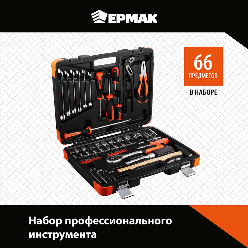 Ермак Набор Проф. Инструмента, 66 Предметов 1/4+1/2 (736-105) ермак арт. 736-105