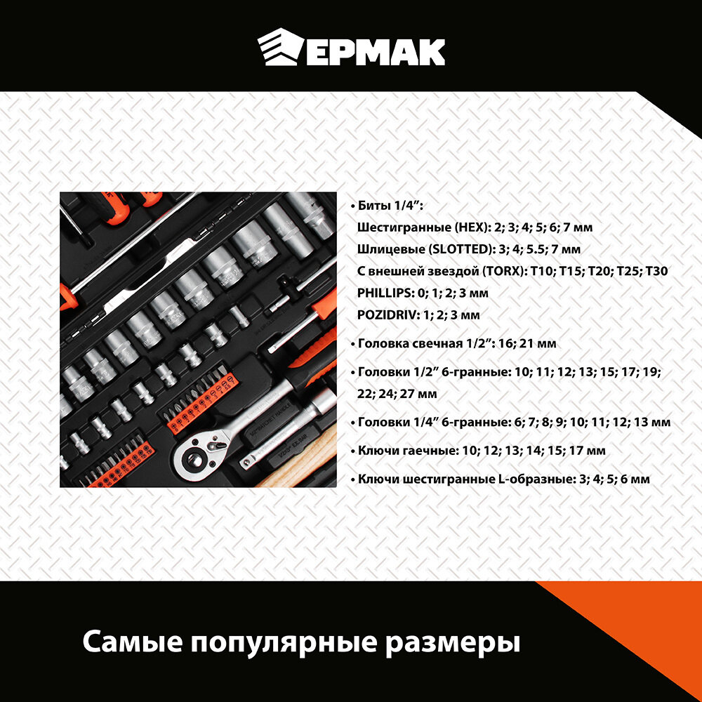 СохранитьНабор автомобильных инструментов / инструмент для авто 66 предметов Ермак интересное: