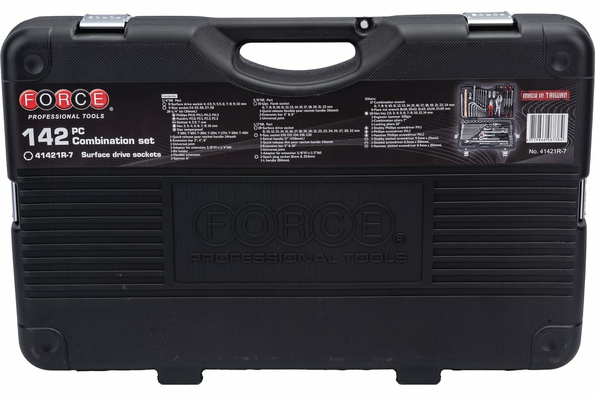 F-41421R-7 FORCE Набор инструмента 1/4"&3/8"&1/2" Surface головки 4-32 мм, E4-E20, 142 пр
