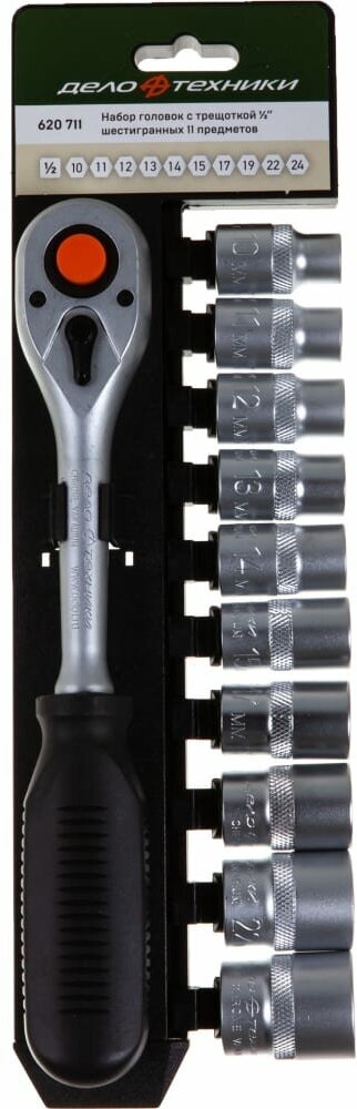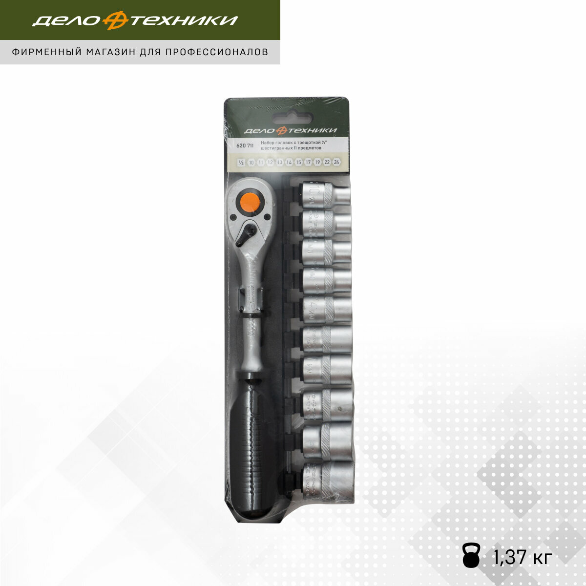 Дело техники 620711 набор головок 6-гр. с трещоткой 1 / 2 11 пр.(10 11 12 13 14 15 17 19 22 24)дт / 12 / 6
