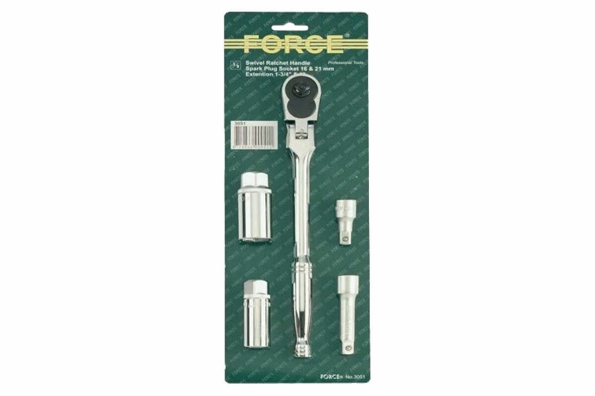 Набор инструментов 3/8" 5-предметов трещетка и свечные головки 16 и 21 мм FORCE F3051